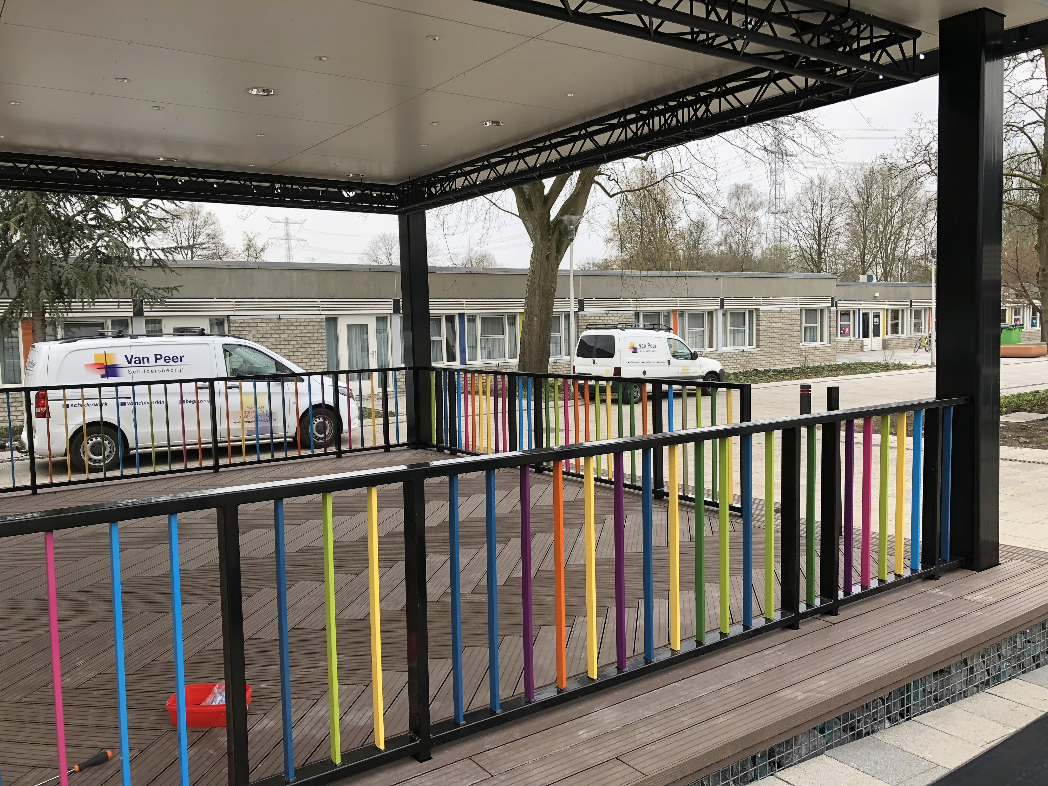 Bij ASVZ in Sliedrecht hebben we onder andere dit hekje een vrolijke make-over gegeven. Geen saaie kleuren, maar een bonte mix van alles door elkaar! Het ziet er nu hartstikke gezellig uit voor de bewoners. Zo is het hek niet alleen weer goed beschermd tegen het weer, maar wordt ook iedereen er blij van als ze langslopen.